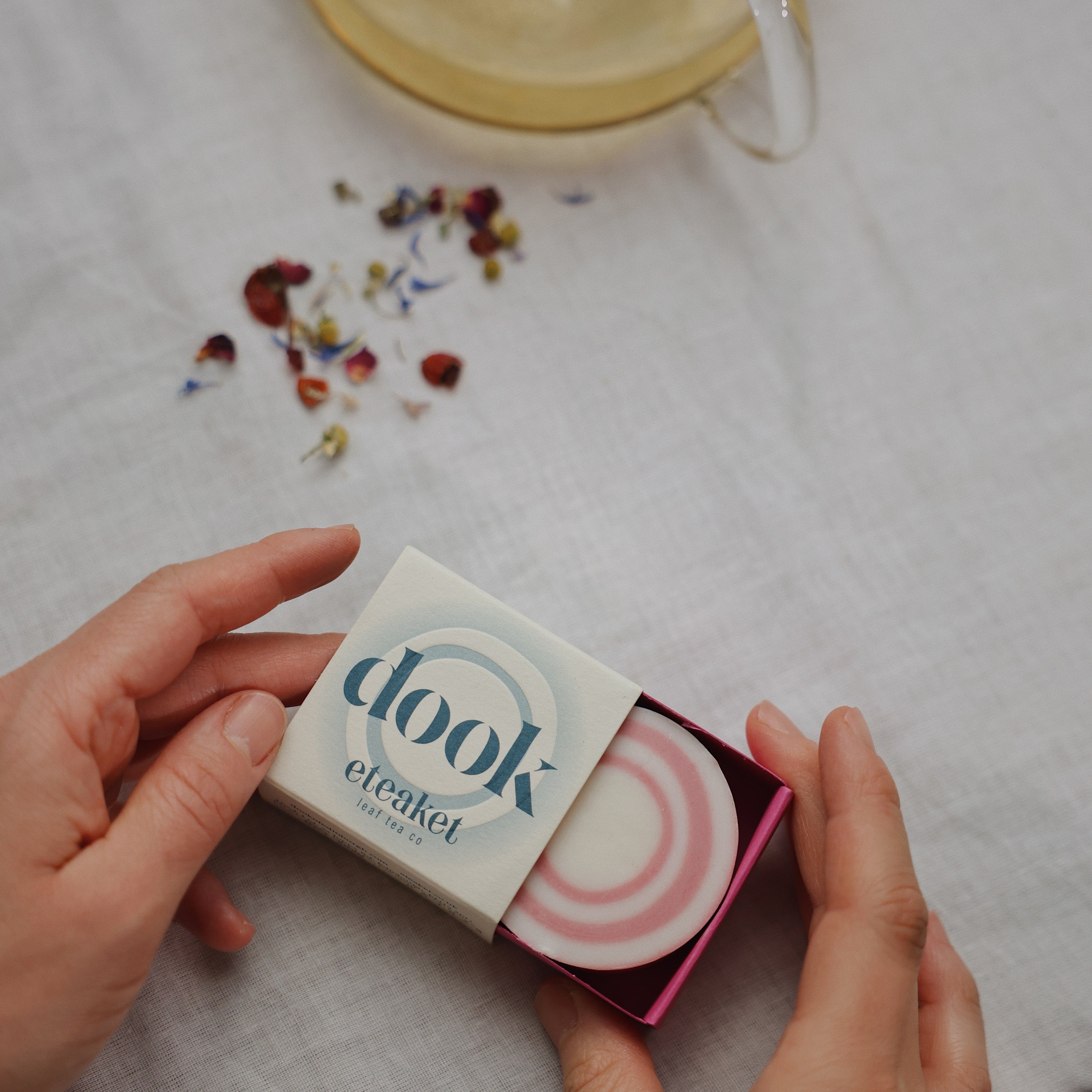Together we’ve created Sea Within, a soothing herbal tea and a matching salt soap that share a coastal calm at their heart. Eteaket’s infusion blends rosehip peel, chamomile, birch leaves, rose petals, ginger, and spirulina, ingredients chosen to ground, restore and refresh.
