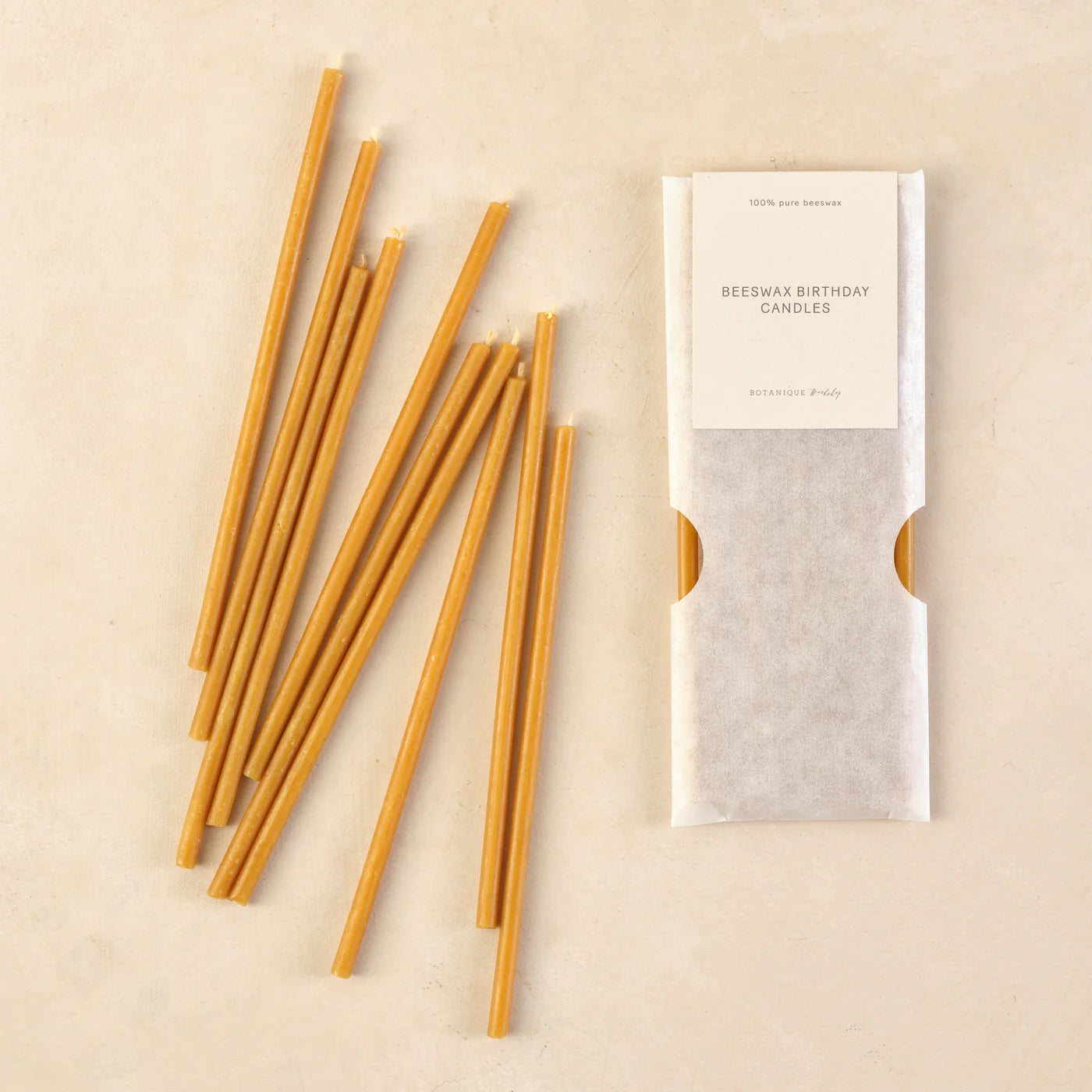 A set of 10 pure beeswax birthday candles.