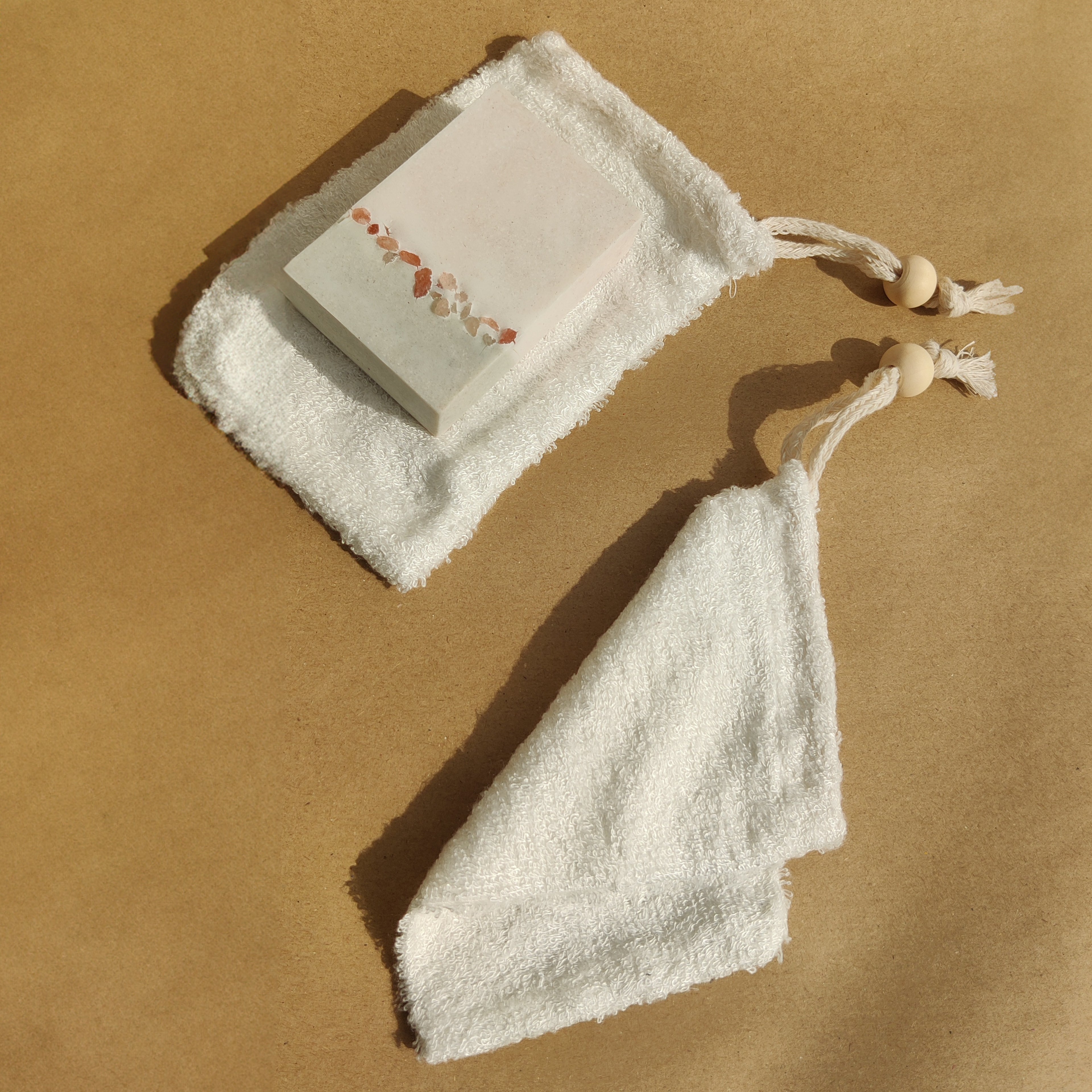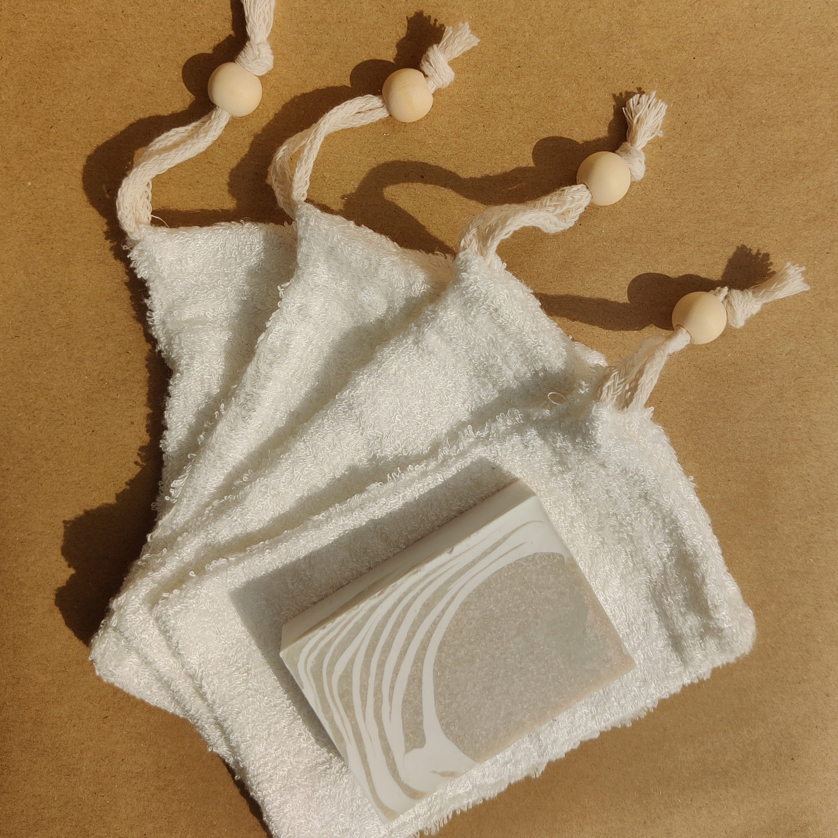 Use every last bit of your dook handmade soap or shampoo bar with this handy little bamboo towelling bag.