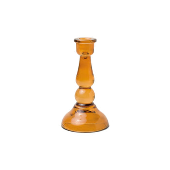 Beautifully tinted glass taper holders add eye-catching height and radiant shine to any tablescape or mantle.