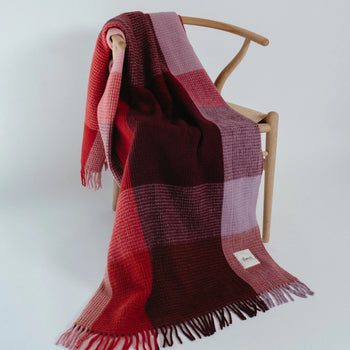 Recycled Wool Blanket - Burgundy and Lilac Waffle Block
