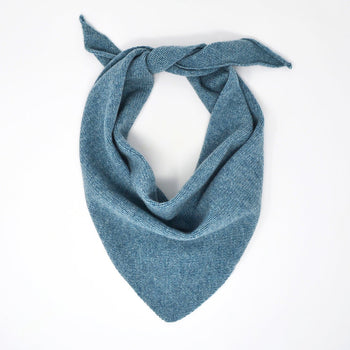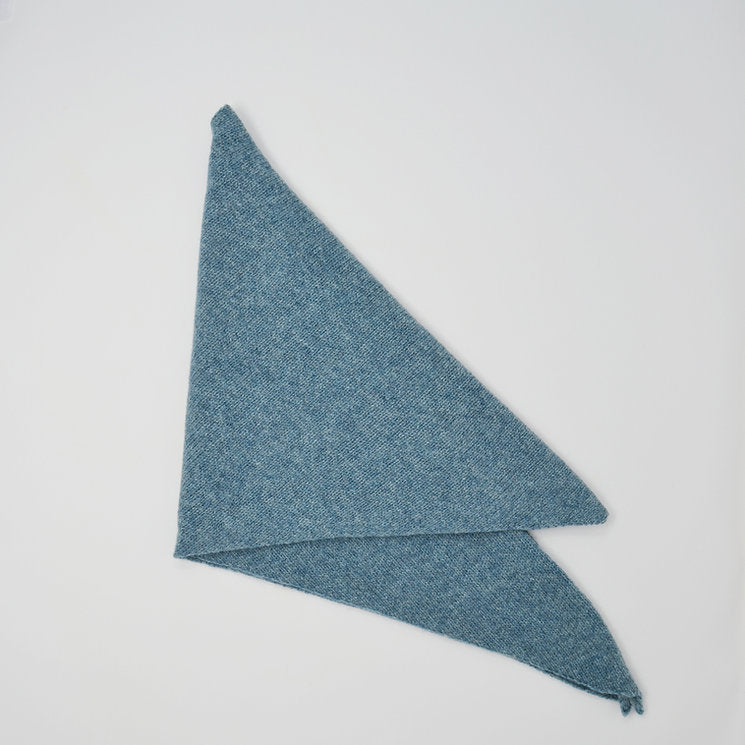 A grey-blue coloured knitted triangular scarf handmade in Scotland using the softest Scottish spun lambswool.