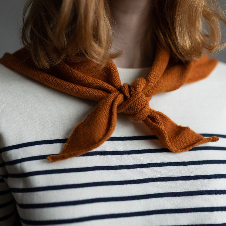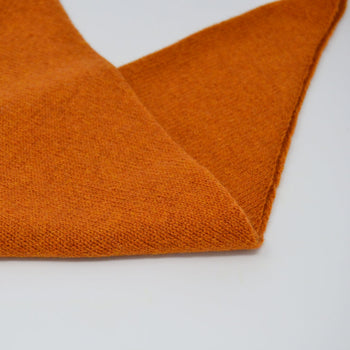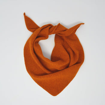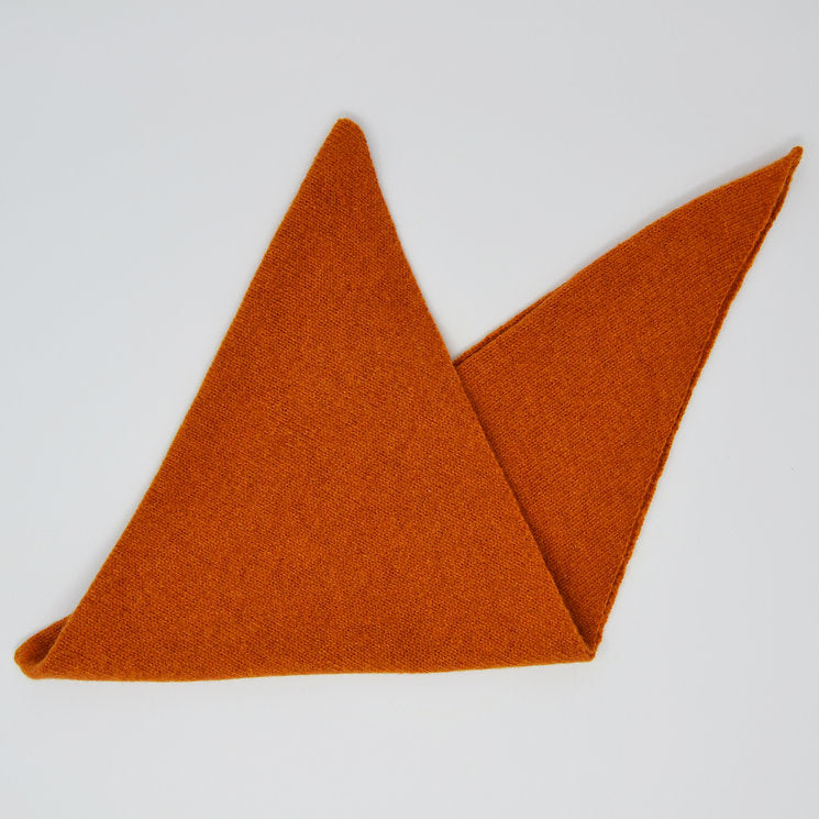 A rust-coloured knitted triangular scarf handmade in Scotland using the softest Scottish spun lambswool.
