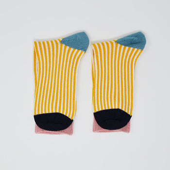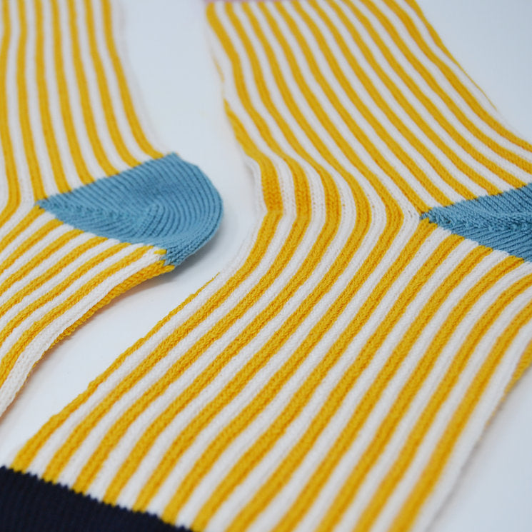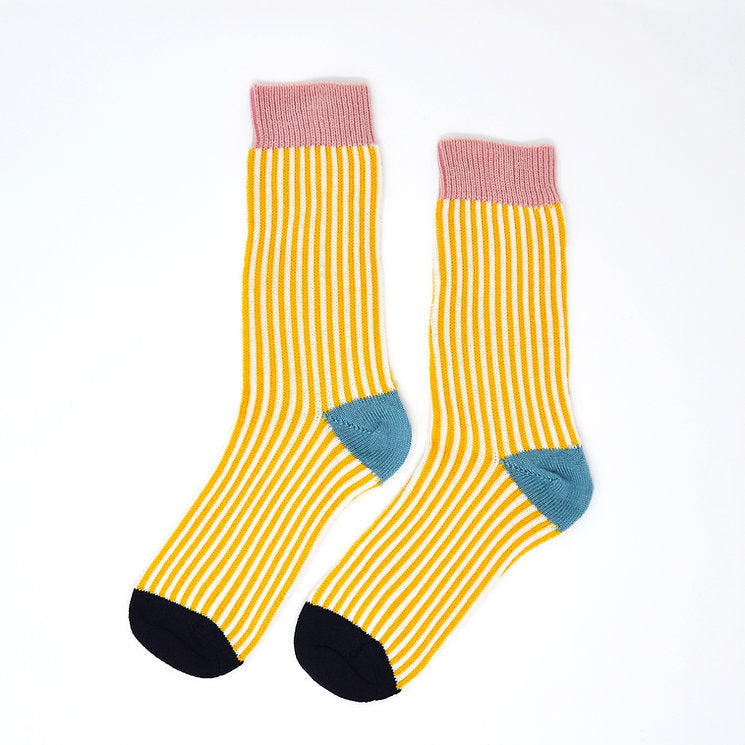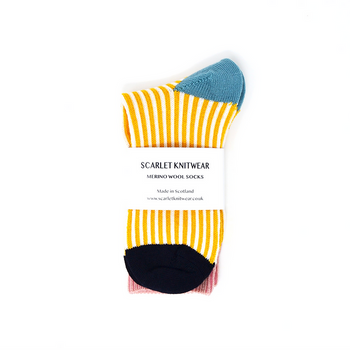 Extra soft Merino wool socks with vertical stripe design and contrast colour heel and toes.