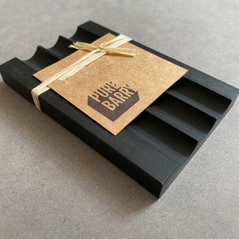 Our hand-poured Patchouli, Frankincense, Mandarin and Cedar salt soap paired with a beautiful, hardwearing and innovative soap dish by the legends at Pure Barry.