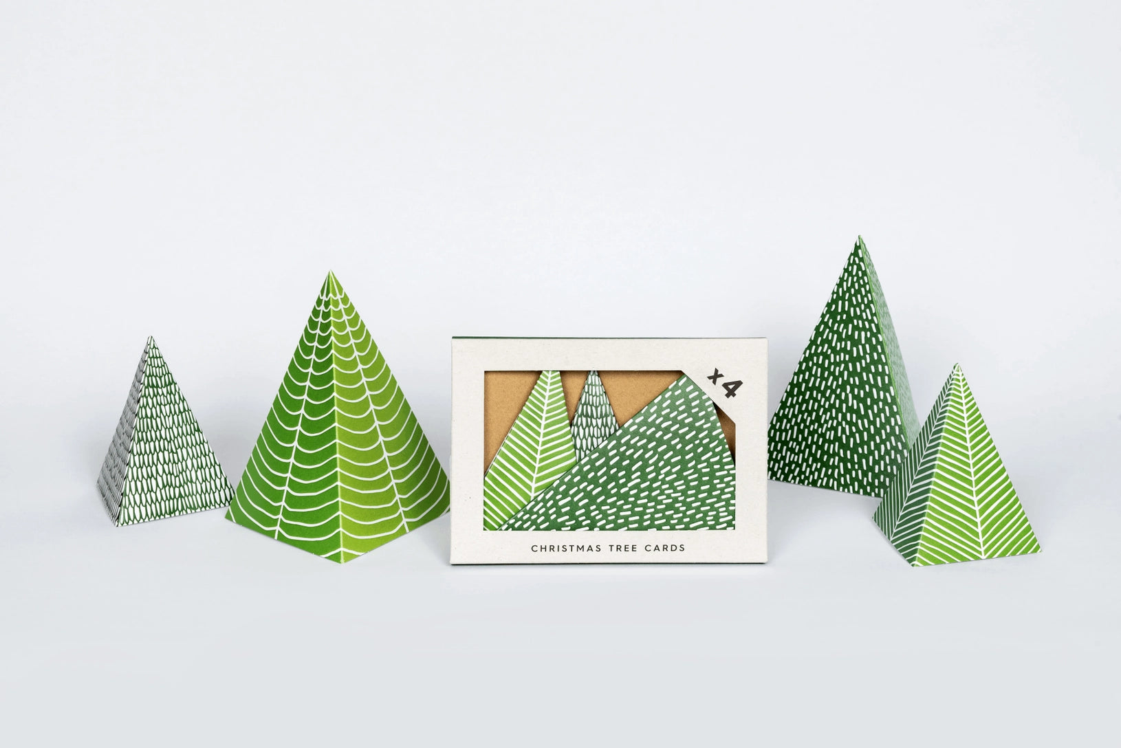 A pack of 4 Christmas cards which can be folded to create little trees.