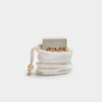 Use every last bit of your dook handmade soap or shampoo bar with this handy little bamboo towelling bag.