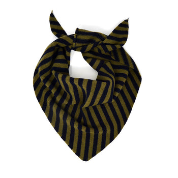 Knitted Neckerchief Scarf - Stripy - Olive & Navy