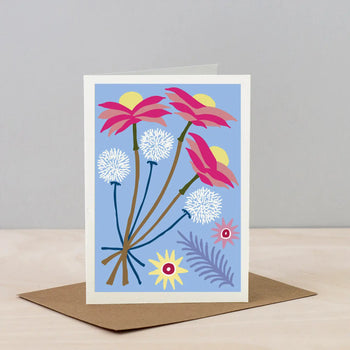 Striking greetings card inspired by the aesthetics and colours of dried flowers.
