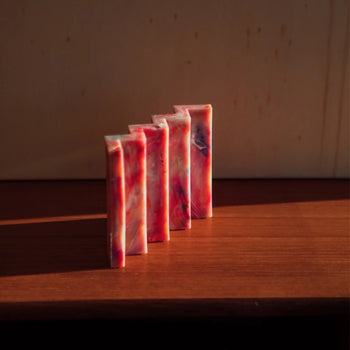 This blend of plastics has been put together with the Vanish tubs and yoghurt pots used by the people of Margate, Kent. These soap dishes come in a mixture of pink, orange, yellow with a touch of blue.