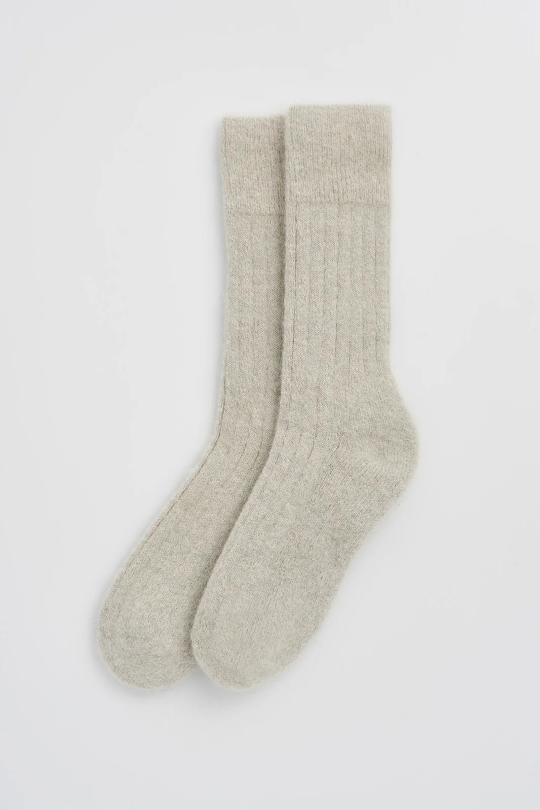 Ultra Soft Alpaca Bed Socks - Ribbed - Pearl Grey