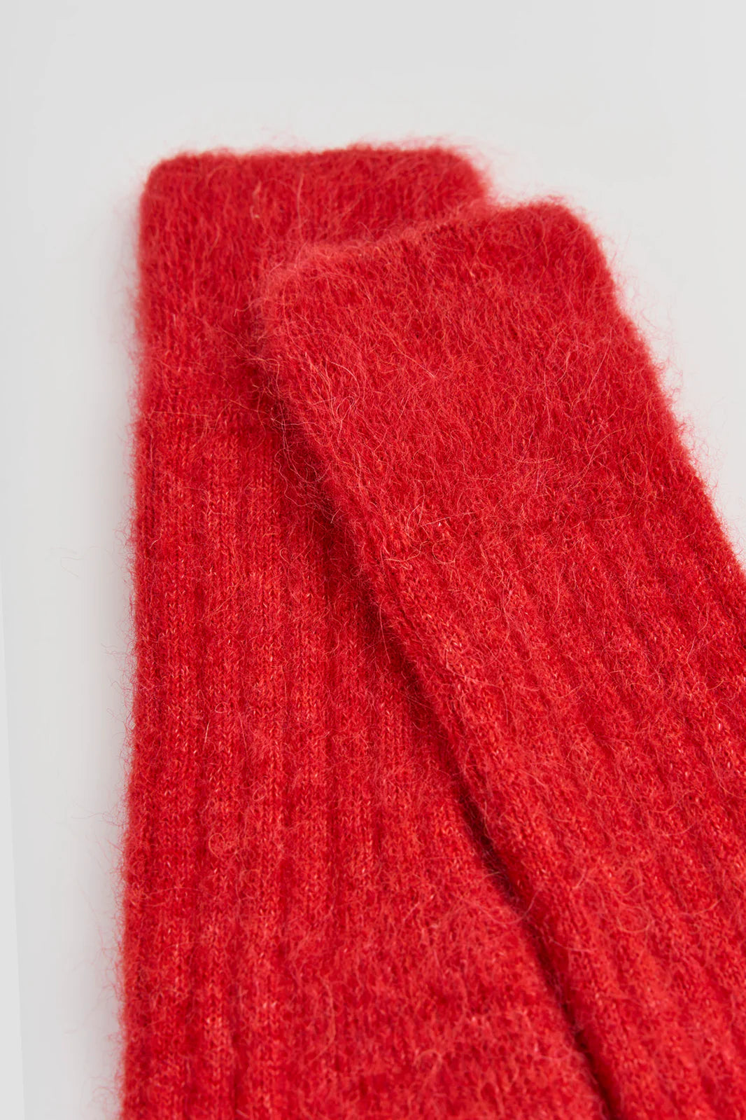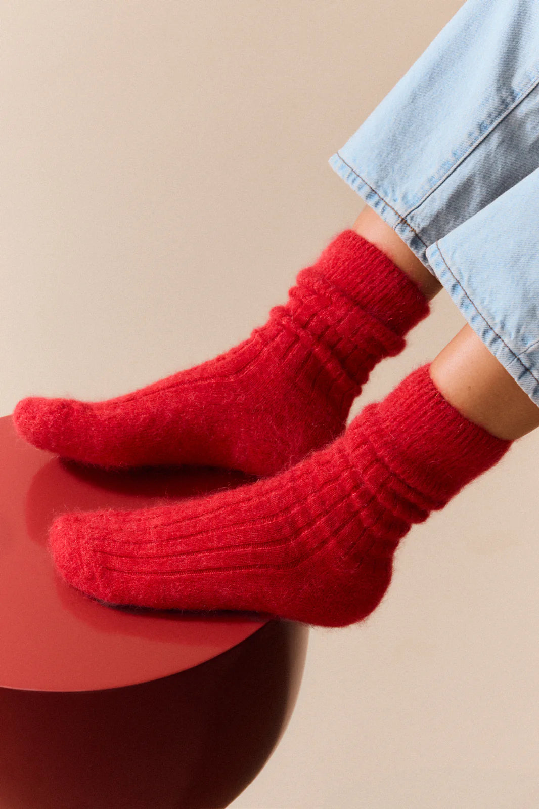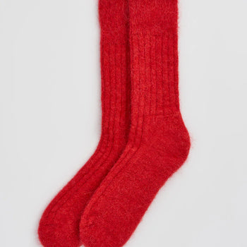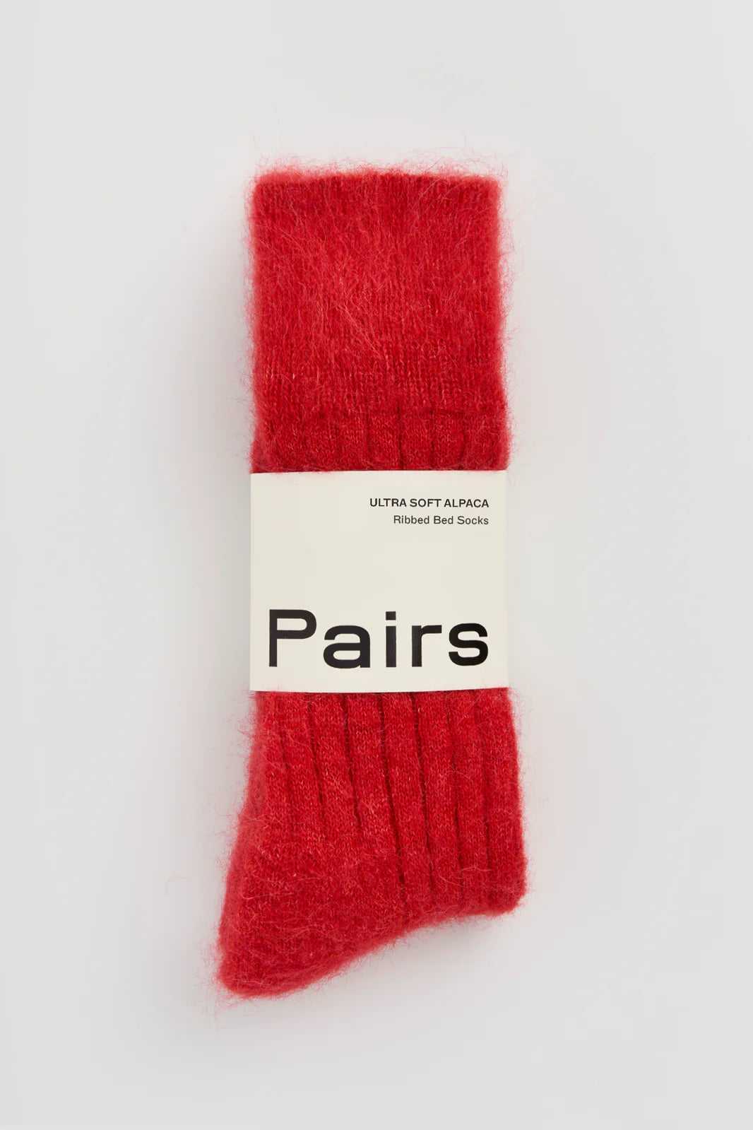 Ultra Soft Alpaca Bed Socks - Ribbed - Red