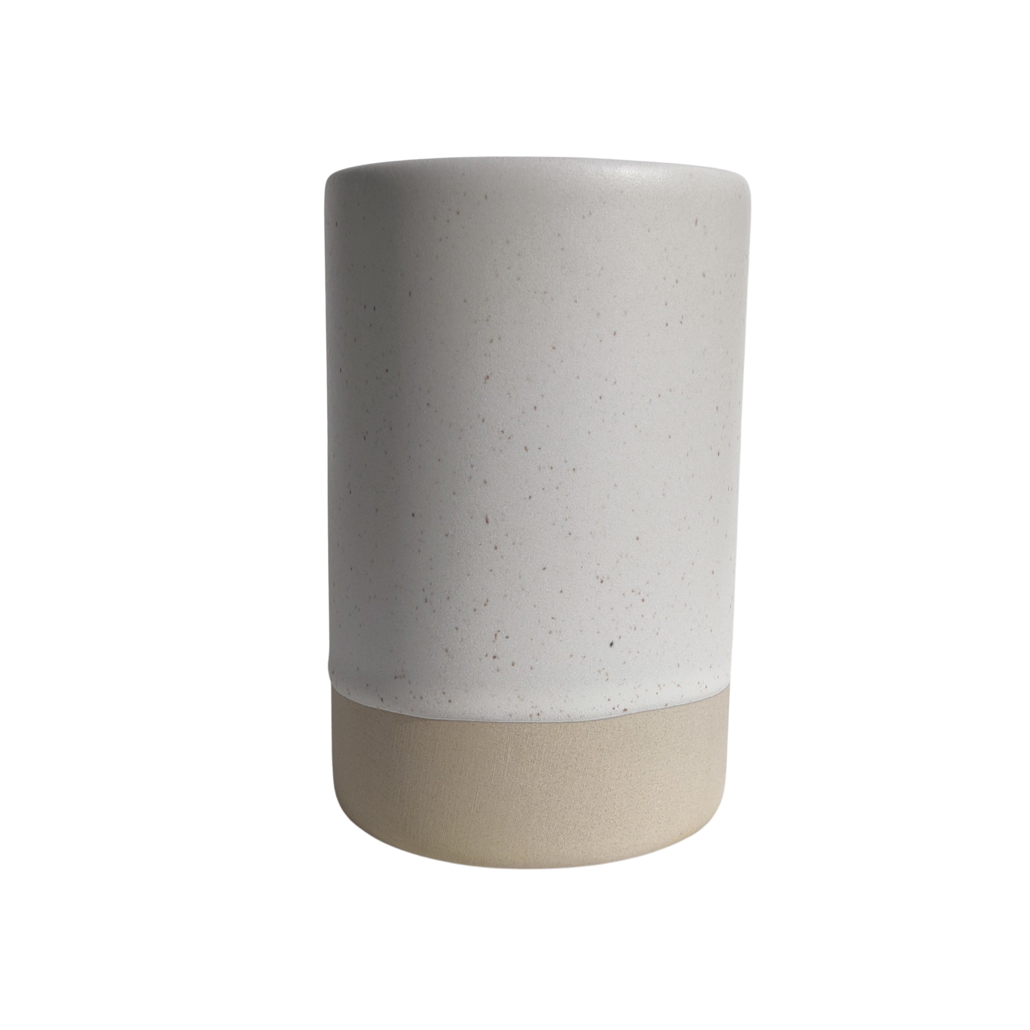 Ceramic toothbrush holder, glazed with a matt cream glaze with natural ceramic showing underneath.